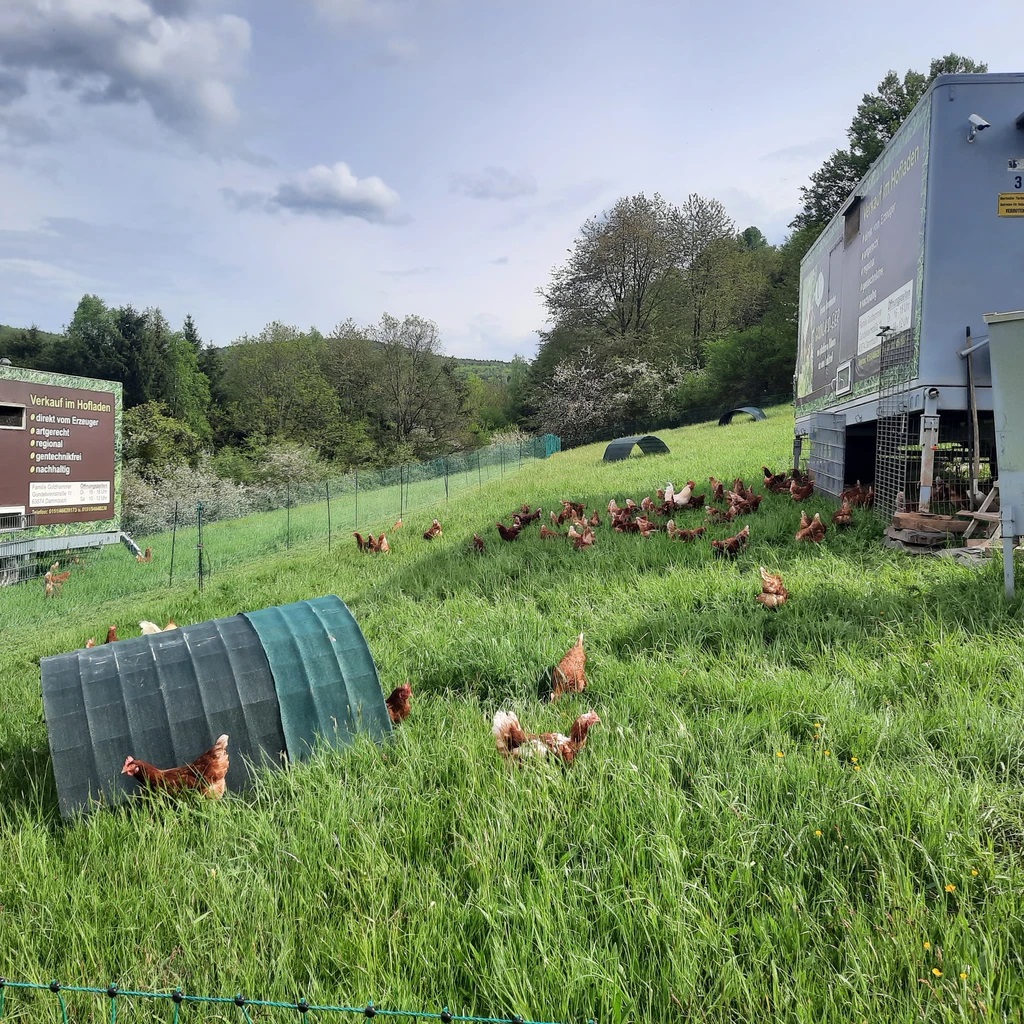 Von Familie Goldhammer aus Dammbach beziehen wir bereits seit einigen Jahren die hervorragend schmeckenden Grünlandeier und Suppenhühner. Diese haben wir in unserem Hofladen stets vorrätig.
